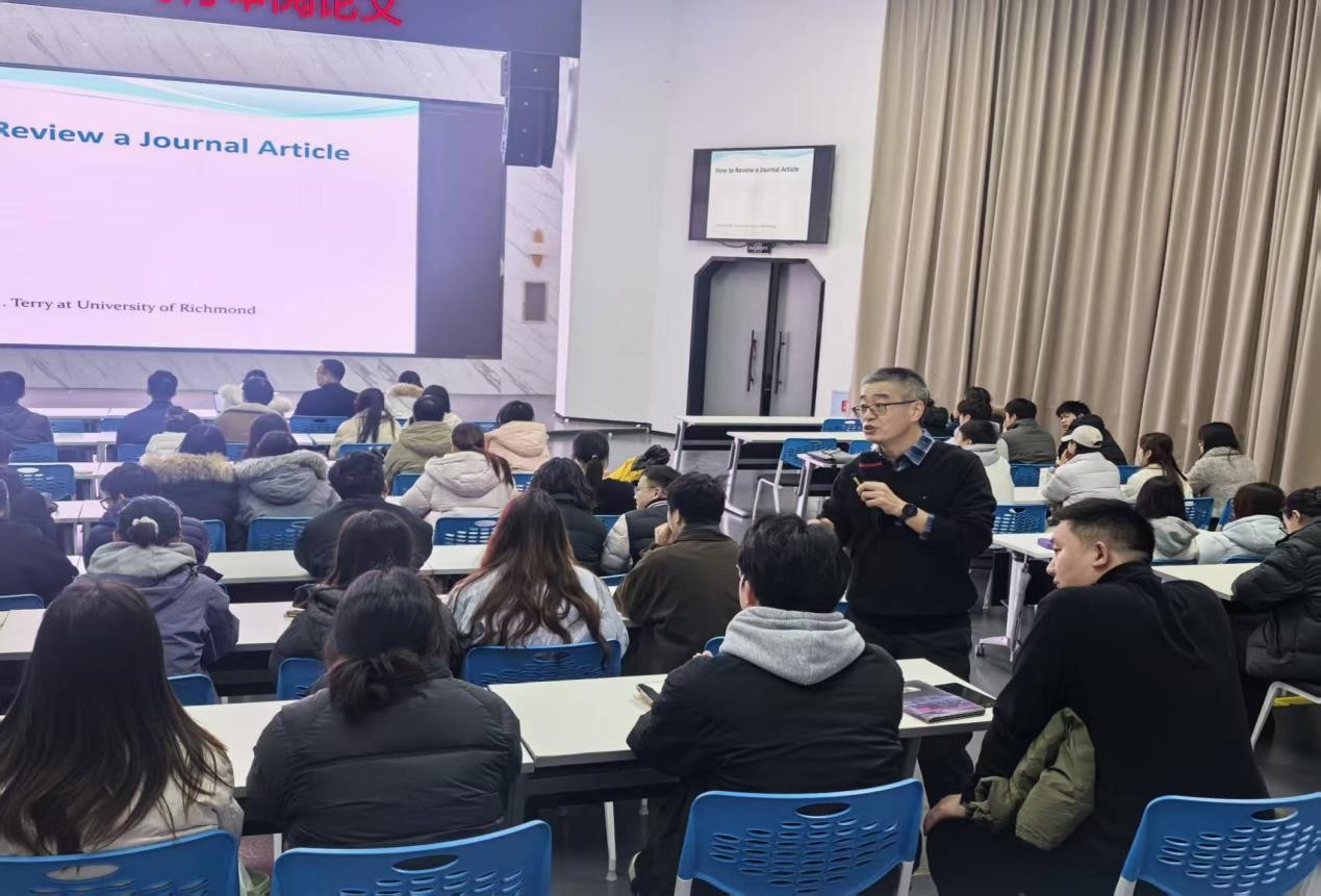 2025 年 12 月 22 日上午10:00,学院特邀明尼苏达大学曹新宇教授开展题为 “如何撰写国际同行审阅论文” 的专题讲座。本次讲座由副院长吴伟教授主持,学院部分教师及研究生齐聚一堂,共同学习学术论文撰写的核心技巧。
