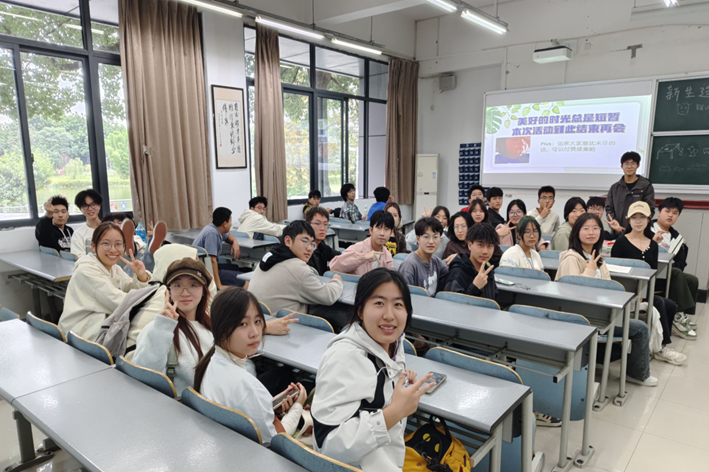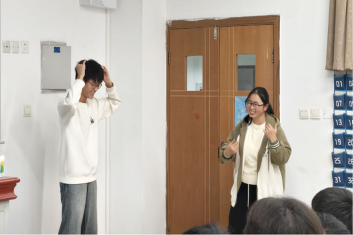 最后,各班以“大学适应说”为主题开展场景互动,邀请同学们分享自入学以来关于气候适应、学习调整、集体融入等场景下的真实经历和适应策略。新生们在分享与聆听中明确了努力方向,主动规划和适应大学生活,将入学初期的迷茫转化为前瞻的动力。