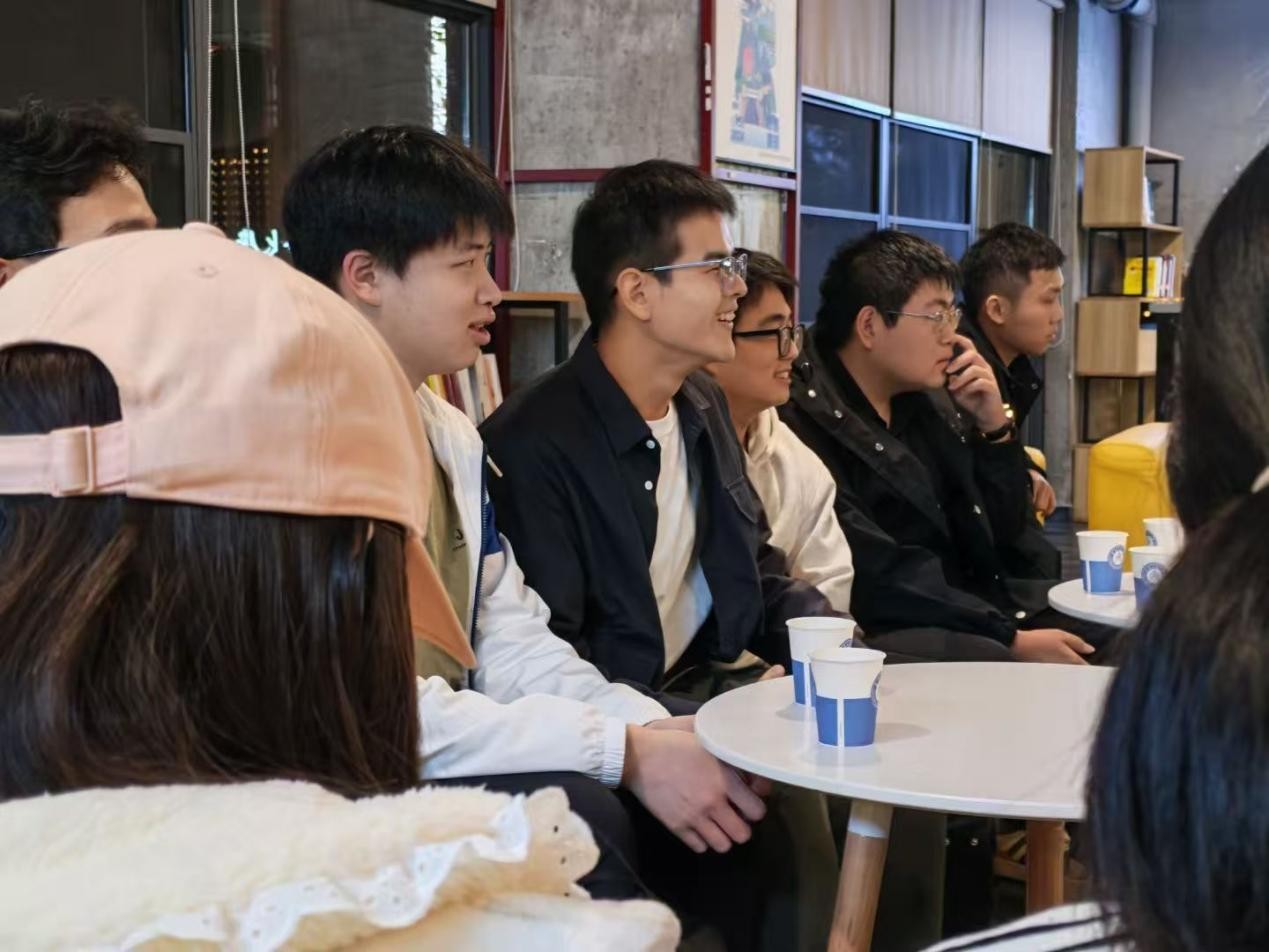 本次受邀同学分别有许昊琦、侯晓通、马天成、吴石先、申自兵、王智超,他们结合了亲身经历,拆解科技竞赛从选题立项、团队协作、作品打磨到冲刺获奖的全流程技巧,揭秘了如何将竞赛成果转化为保研核心竞争力;同时分享了保研备战中与竞赛衔接的关键策略,包括如何平衡学业与竞赛、挖掘个人优势、提升综合素养等关键内容。活动现场布置简洁而富有活力,黄色沙发与书架相映成趣,自助服务区为参与者提供了便捷支持,轻松开放的氛围让大家迅速融入其中,干货满满的分享让现场不时响起热烈掌声。