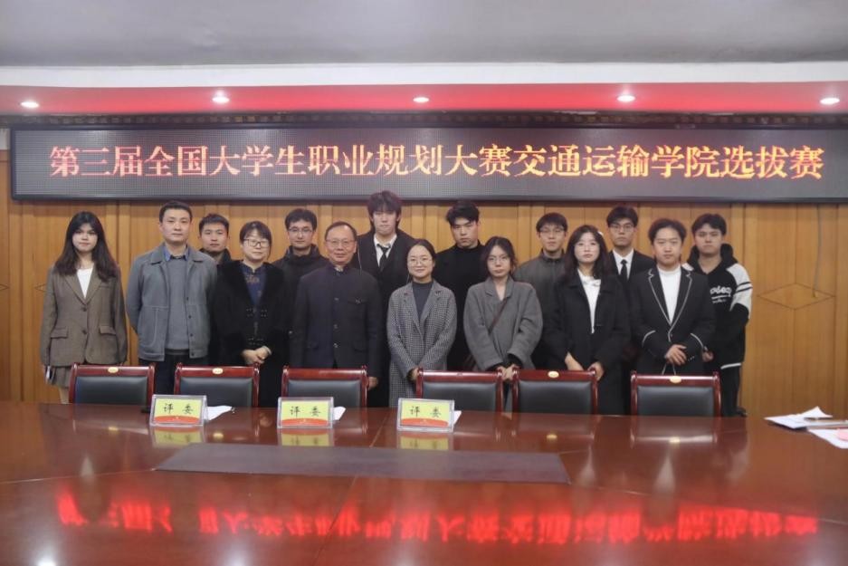 2025年11月28日下午,第三届全国大学生职业规划大赛交通运输学院院内选拔赛在南岸校区交通运输学院办公楼201会议室举行。本次比赛以“筑梦青春志在四方,规划启航职引未来”为主题,设立就业赛道和成长赛道,吸引了众多学生积极参与。经过前期的初赛选拔,共13名选手进入到院内选拔赛。