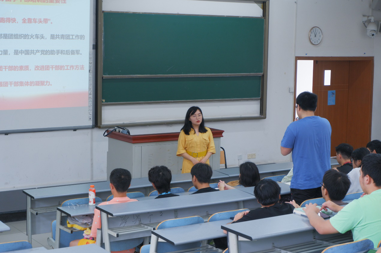 最后,谭佳佳老师对身为青年学生中“领头雁”的团学干部们提出了在工作上“更上一层楼”的几点建议:一是爱党爱国,提升引领力,充分发挥团学干部的引领示范作用;二是在团为团,提升担当力,牢固树立团学干部的责任担当意识;三是在团言团,提升组织力,广泛汇聚青年学生的向心力、创造力;四是在团兴团,提升服务力,大力发扬吃苦耐劳的奉献精神。相信青年团干们必将在为同学和学院的发展服务中提升能力、完善人格、实现价值,肩负起时代的重任。