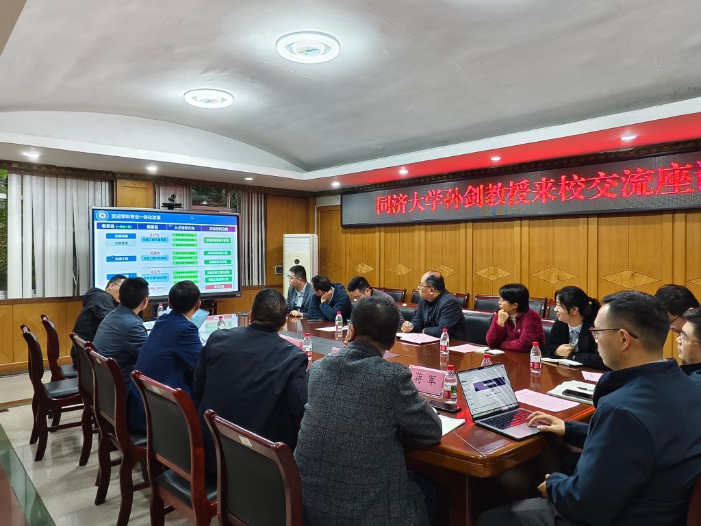 2025年11月16日上午,交通运输学院举办学科专业转型升级研讨会,特邀同济大学孙剑教授交流指导。会议由学院刘唐志院长主持,魏铜铃书记、吴伟副院长、蒋军副院长、何永福、王嵩、李为为、贾硕、饶畅、刘毅等教师参会。本次研讨会聚焦智能交通装备与控制系学科专业一体化改革、2026版人才培养方案修订、智能网联与自动驾驶研究方向凝练等议题,旨在推动交通运输工程学科在新时代背景下的转型升级与创新发展。