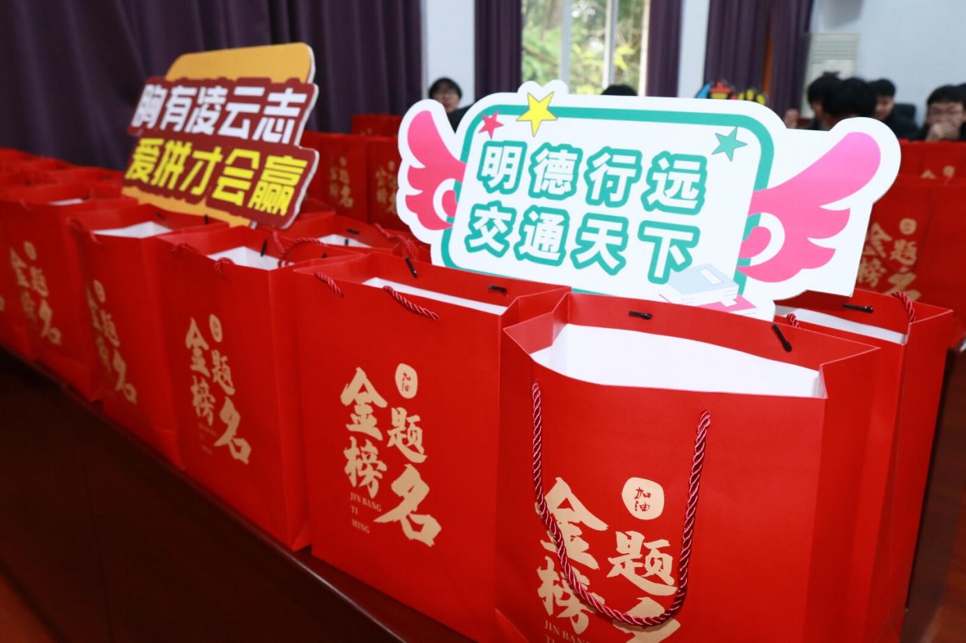 最后,学院领导和辅导员老师们为考研学子们送上精心准备的“考研加油礼包”,承载着学院满满的祝福与期待,寓意着同学们能够一“研”为定,成功上岸。