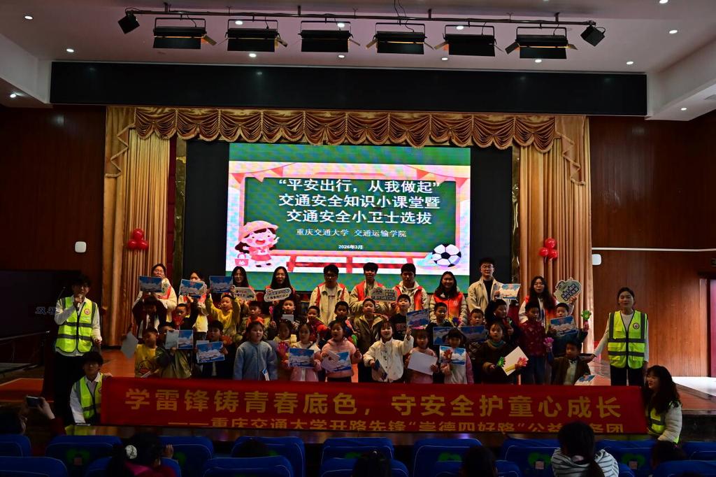 为践行数字时代雷锋精神,探索智慧安全教育新模式,2026年3月20日,重庆交通大学交通运输学院开路先锋“崇德四好路”公益服务团的志愿者们化身交通安全科普讲师,走进江津区双福第二小学,借助AI科技为孩子们量身打造了一堂集趣味性与知识性于一体的交通安全特色课堂。